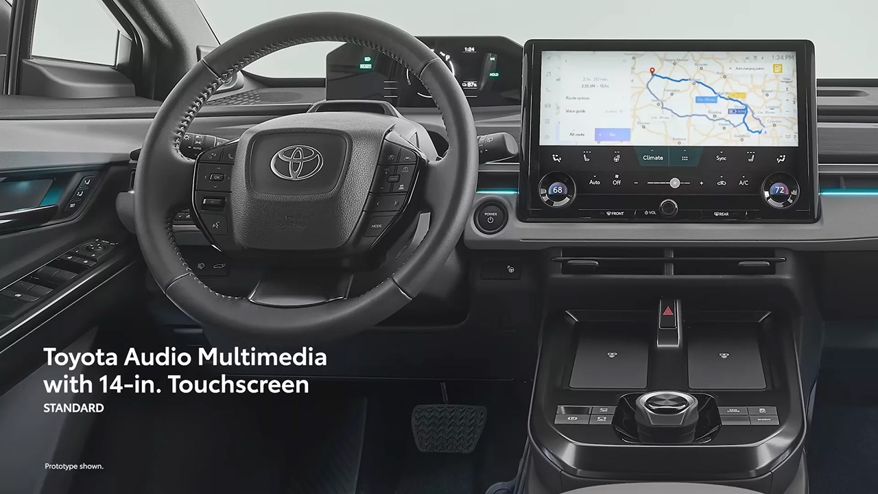 Inside, the vehicle comes with a digital instrument cluster and a 14-inch Toyota Audio Multimedia system. It also includes a heated steering wheel and heated front seats with fabric and SofTex upholstery. The driver’s seat offers 8-way power adjustment, along with dual wireless smartphone chargers and a six-speaker audio system. Paddle shifters mounted behind the steering wheel allow drivers to control the regenerative braking system.