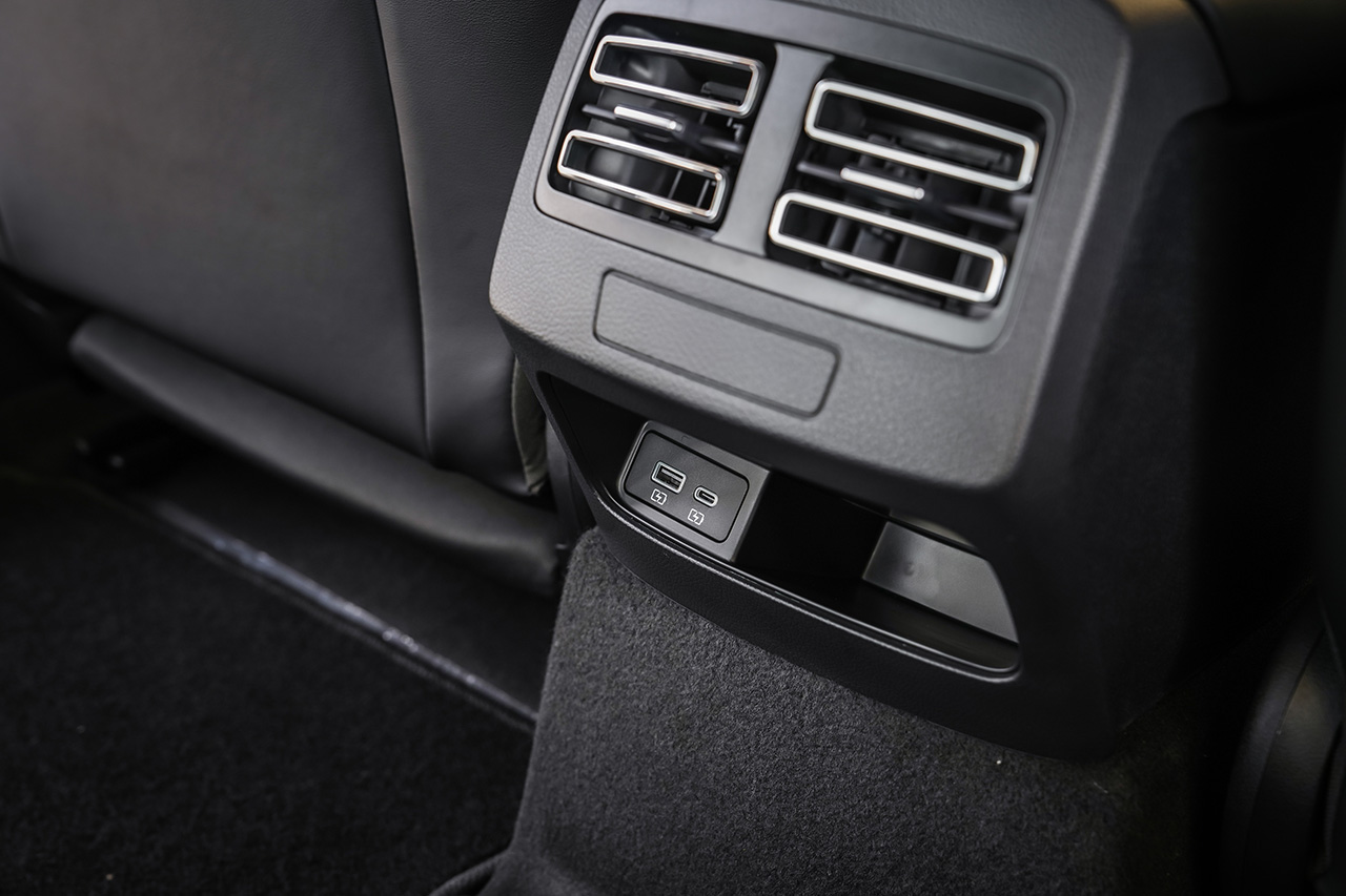 Rear armrest with cupholders, footwell lighting