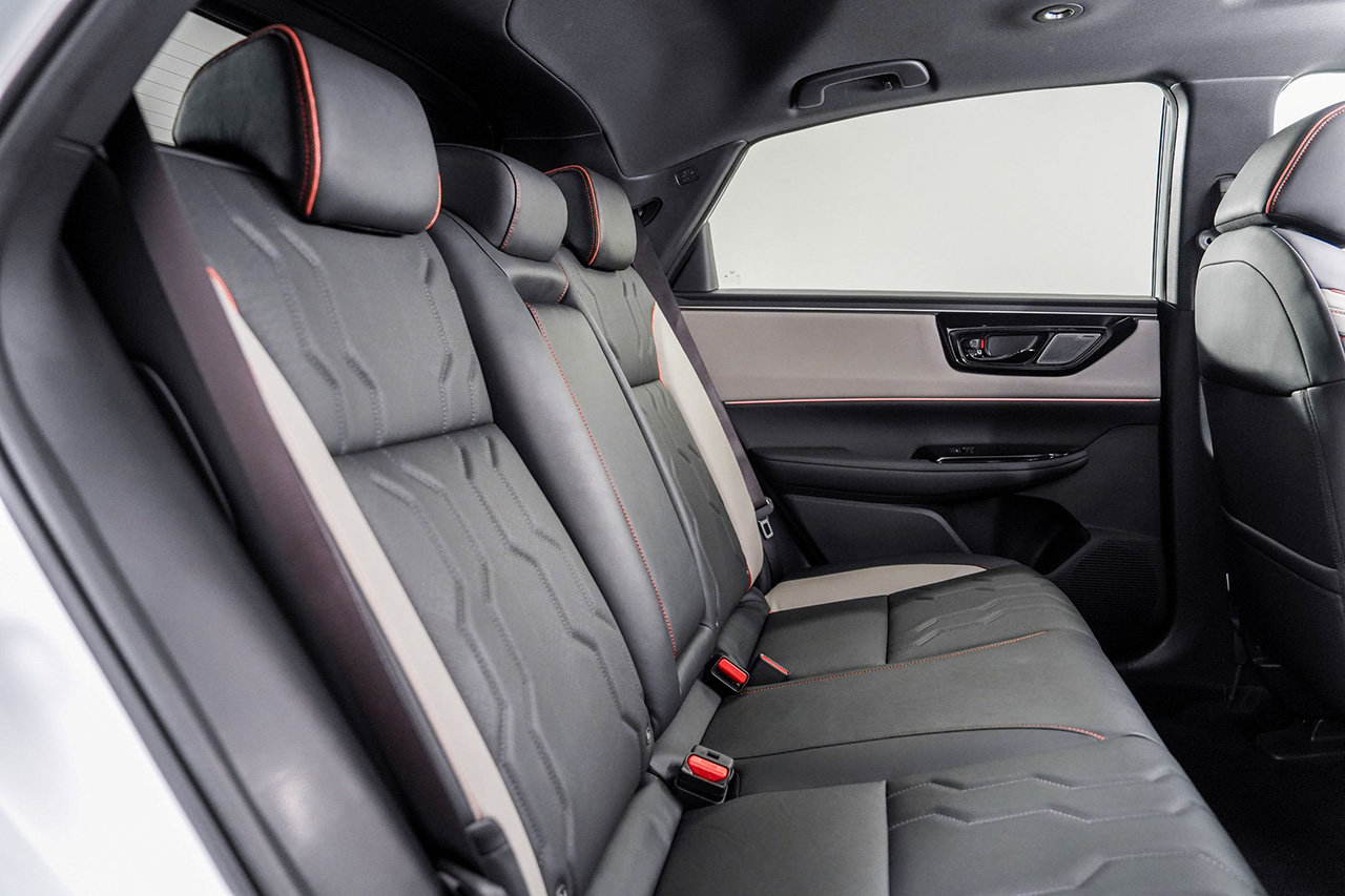 ภายในห้องโดยสาร ออกแบบให้โปร่งโล่ง เรียบง่ายและทันสมัย เน้นความสะดวกสบายและผ่อนคลายในทุกที่นั่ง ใช้วัสดุคุณภาพสูง สีภายในห้องโดยสารสีทูโทน (เทา/ดำ) ตกแต่งด้วยแถบสีส้ม ตัวรถมาพร้อมระบบเครื่องเสียงลำโพง BOSE 12 ตำแหน่ง พร้อมพื้นที่บรรทุก สัมภาระท้ายที่กว้างขวาง หน้าจอสัมผัสขนาด 12.8 นิ้วแบบ Advanced Touch รองรับ Apple CarPlay และ Android Auto แบบไร้สาย Head Up Display ขนาด 11.5 นิ้ว นอกจากนี้ยังมาพร้อมระบบน้ำหอมอโรมา (Aroma Difuser) แคปซูลน้ำหอมที่กระจายกลิ่นผ่านช่องปรับอากาศ รองรับการติดตั้งได้สูงสุดถึง 3 แคปซูล สามารถเลือกและปรับระดับความแรงของกลิ่นได้ถึง 3 ระดับ ผ่านหน้าจอสัมผัส