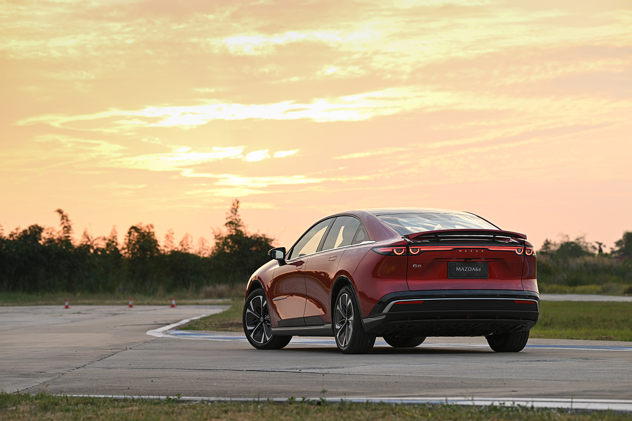 ในด้านสมรรถนะ Mazda6e ขับเคลื่อนด้วยมอเตอร์ไฟฟ้าให้กำลังสูงสุด 258 แรงม้า และแรงบิด 290 นิวตันเมตร สามารถเร่งความเร็วจาก 0-100 กม./ชม. ได้ภายในเวลาไม่ถึง 8 วินาที ตัวรถมาพร้อมแบตเตอรี่ Lithium-Iron Phosphate (LFP) ความจุ 77.9 kWh รองรับการชาร์จเร็วแบบ DC Fast Charging สูงสุด 200 kW สามารถชาร์จจาก 30-80% ภายในประมาณ 15 นาที ระยะทางขับขี่สูงสุด 654 กิโลเมตร ตามมาตรฐาน NEDC โครงสร้างตัวรถได้รับการออกแบบให้มีการกระจายน้ำหนักหน้า-หลังใกล้เคียง 50:50 ระบบช่วงล่างด้านหน้าแบบ MacPherson Strut และด้านหลังแบบ Multi-Link พร้อมโหมดการขับขี่ให้เลือก Comfort, Sport และ Individual