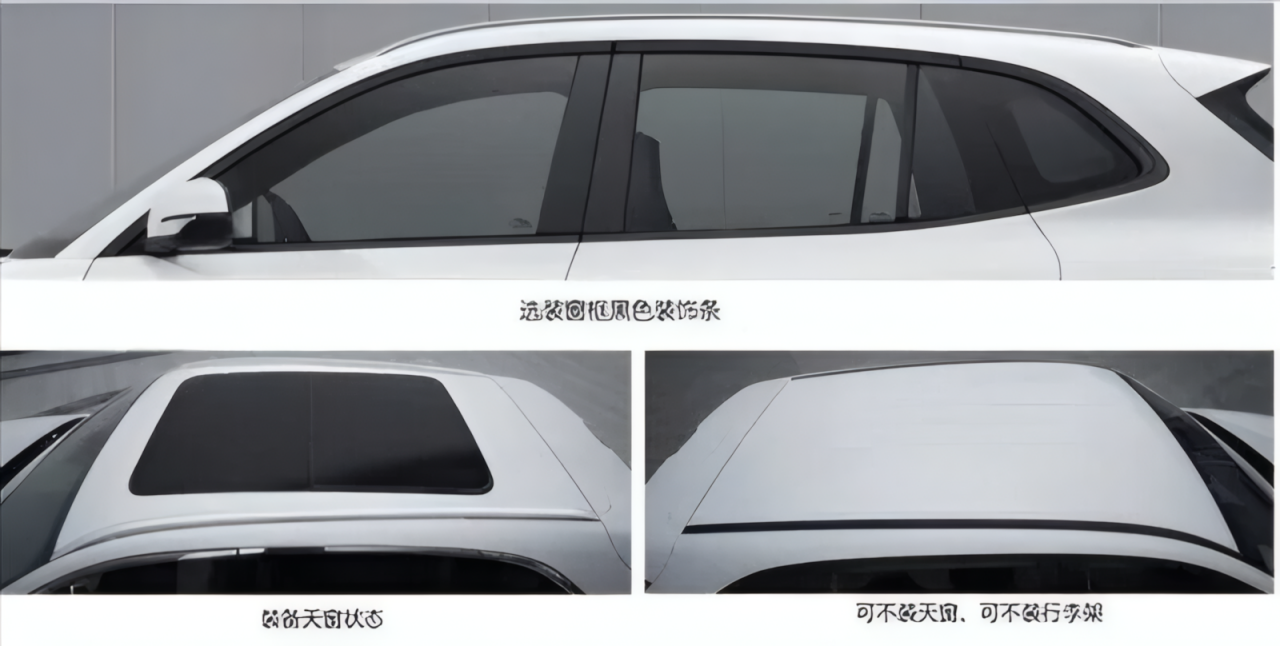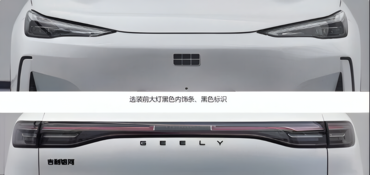 The Geely EX5 retains its sleek exterior styling with slim LED headlights, a sculpted front bumper, and a closed grille with dot-matrix detailing. At the rear, it features a full-width taillight bar and silver trim elements, along with optional new Geely logos in black. Other highlights include black window trim, a panoramic sunroof, and 18- or 19-inch alloy wheels.