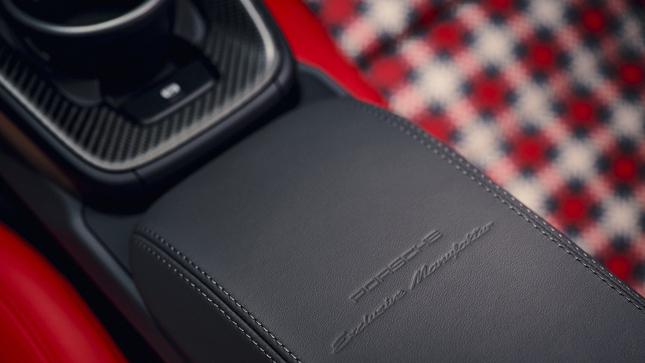 ภายในห้องโดยสารประกอบด้วยเบาะ Adaptive Sports Seats Plus โดดเด่นด้วยลายปักเส้นขอบสัญลักษณ์ปอร์เช่ เบาะส่วนกลางหุ้มด้วยหนังถัก 4 โทนสี ได้แก่ Slate Grey, Guards Red, Magnesium Grey และ Kalahari และวัสดุที่ผลิตอย่างประณีตนี้ยังตกแต่งอยู่บริเวณช่องเก็บของด้านหน้า นอกจากนี้ ห้องโดยสารยังหุ้มด้วยหนังทูโทนสี Slate Grey และ Guards Red แทบทั้งบริเวณห้องโดยสาร พร้อมตะเข็บตกแต่ง ห่วงมือจับประตู มือจับเบาะ และเข็มขัดนิรภัยในสี Guards Red ที่ตัดกับโทนภายในอย่างชัดเจน