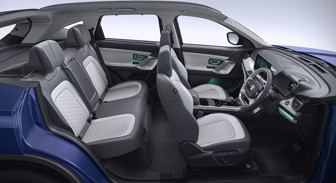 Buyers can choose between two battery options: 65 kWh and 75 kWh. The larger pack delivers a claimed MIDC range of 627 km, though Tata estimates a real-world range of 480–505 km. Fast charging via a 120 kW DC charger allows for a 20–80% charge in just 25 minutes.