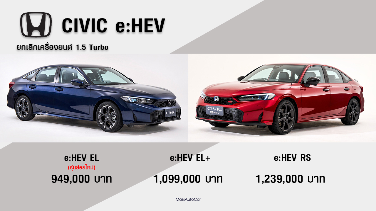 Honda Civic e:HEV ปรับไลน์อัพใหม่ ไฮบริดทุกรุ่นย่อย ยกเลิก 1.5 เทอร์โบ เพิ่มเกรดเริ่มต้นใหม่ e:HEV EL