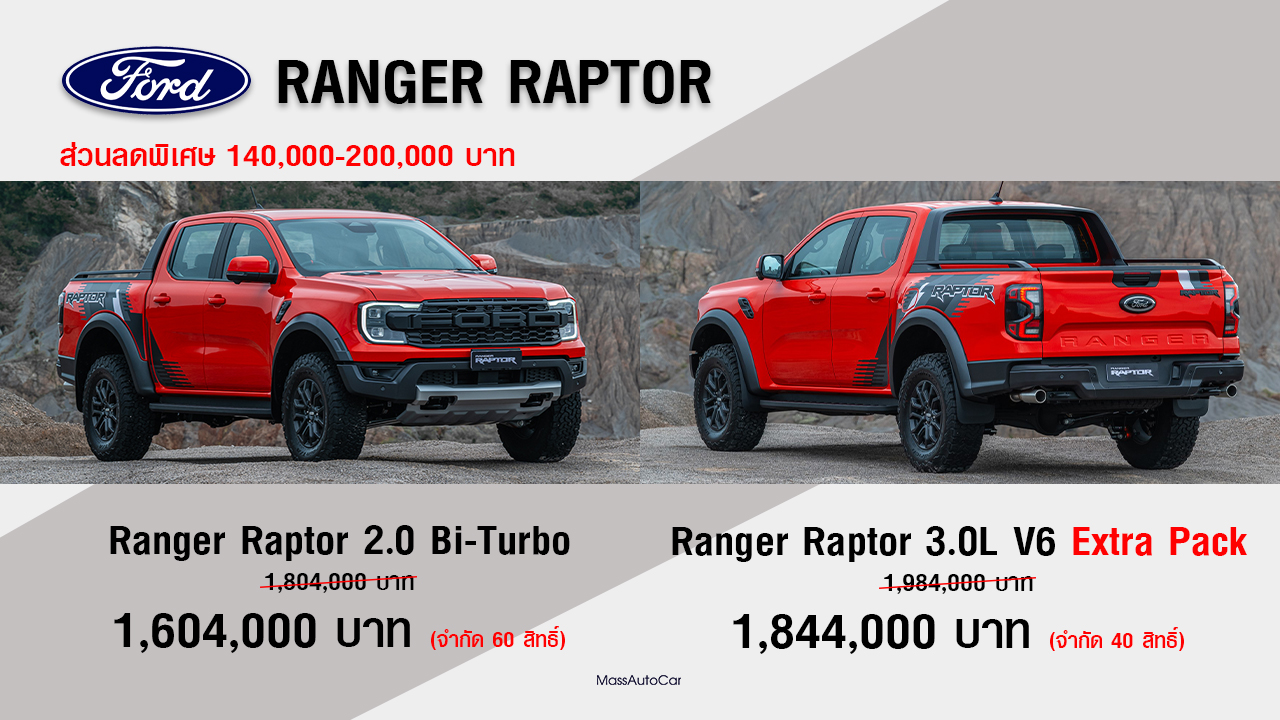 ลดสูงสุด 200,000 บาท! FORD RANGER RAPTOR จำนวนจำกัด ทั้งรุ่นเบนซินและดีเซล