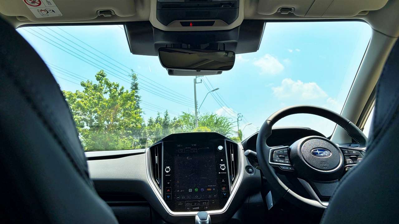 วิสัยทัศน์ของ Crosstrek มุมมองรอบตัวผู้ขับขี่โปร่งโล่งสบาย มีกระจกหูช้างเล็ก ๆ ไว้ส่องมุมอับในขณะเลี้ยว และในเวลากลางคืน ไฟหน้ามีระบบปรับทิศทางตามองศาพวงมาลัยและให้ระบบไฟส่องด้านข้างเมื่อหักเลี้ยว (Conering Lamp LED) ช่วยให้เห็นมุมมือด้านข้างได้ดีขึ้น กระจกมองหลังปรับแสงอัตโนมัติและที่บังแดดแบบยืดออกได้ ซึ่งพอไปลองดึงจริงกลับยืดออกไม่ได้?...(ดึงไม่ออกจริงและไม่กล้าดึงแรงเดี๋ยวจะชำรุด) ถ้าสามารถยิดได้จริง ก็เป็นการเพิ่มที่บังแสงแดดด้านข้างได้ดีขึ้นในแบบที่รถหลายคันไม่ค่อยมีมาให้