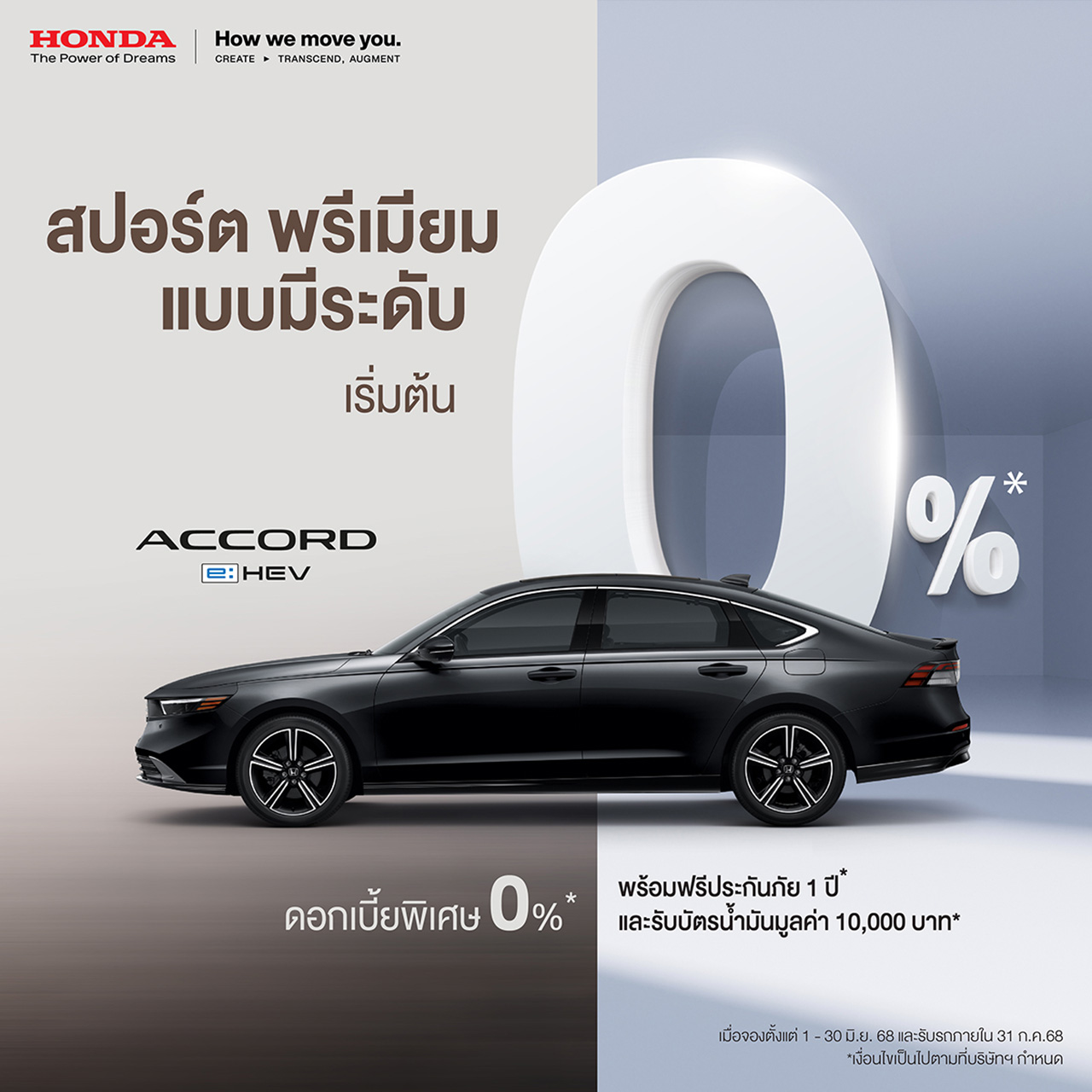 Honda Automobile (Thailand) Co., Ltd. is launching a special mid-year promotion for customers who book a vehicle between June 1–30, 2025, and take delivery by July 31, 2025. The promotion includes interest-free financing, free insurance, trade-in bonuses, and more.