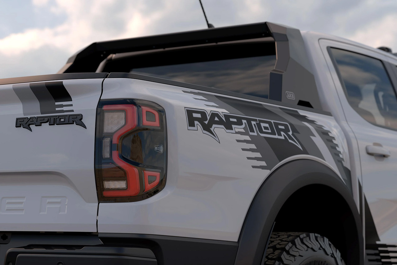 ด้านข้างของตัวรถติด ลายกราฟิก Desert Pack โทนสีดำและเทา ลูกค้าสามารถเลือกไม่ติดลายได้โดยไม่มีค่าใช้จ่ายเพิ่มเติม ภายในห้องโดยสารติดตั้ง พรม Ford Performance แบบทนทานต่อทุกสภาพอากาศ เพื่อป้องกันฝุ่น ทราย และโคลนที่อาจเข้ามาในรถ