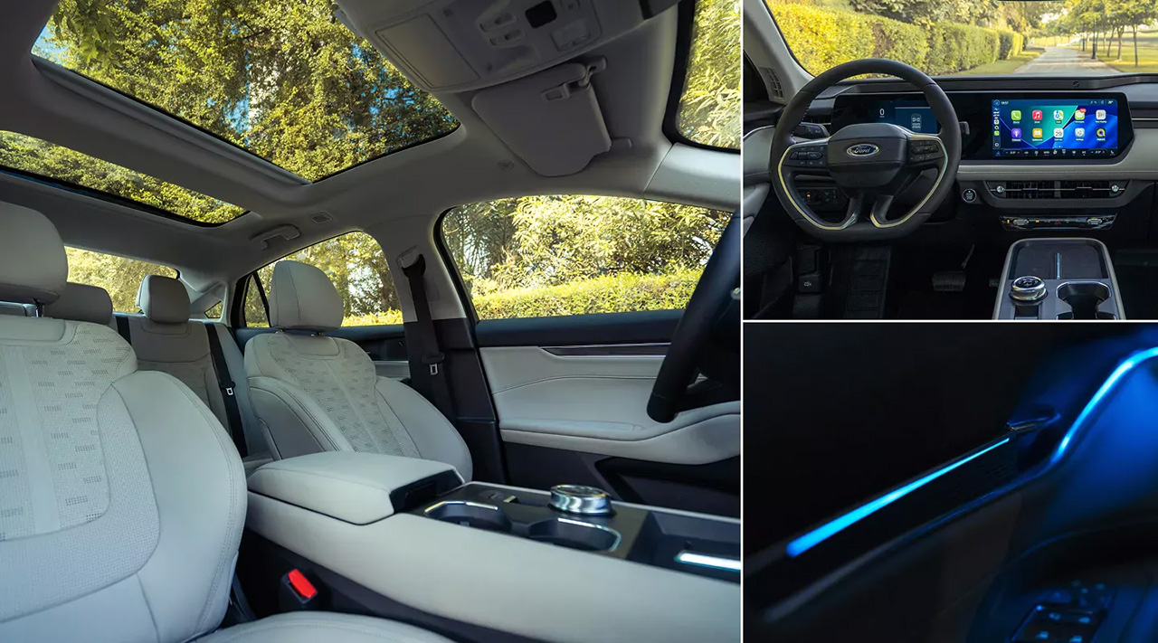 ภายในห้องโดยสารยังคงรูปแบบเดิมที่ใช้หน้าจอเรือนไมล์ดิจิทัล 12.3 นิ้วและจออินโฟเทนเมนต์ 27 นิ้ว แต่มีการอัปเกรดระบบประมวลผลและซอฟต์แวร์ โดยเปลี่ยนมาใช้ SYNC+ เจเนอเรชันใหม่ พร้อมชิป Snapdragon 8155 อินเทอร์เฟซใหม่ถูกออกแบบให้ใช้งานง่ายกว่าเดิม และระบบสั่งงานด้วยเสียงถูกพัฒนาให้ฉลาดขึ้น คอนโซลกลางแบบลอยตัวถูกปรับใหม่ เพิ่มแท่นชาร์จไร้สายคู่และที่วางแก้วดีไซน์ใหม่ รวมถึงการย้ายปุ่มควบคุมต่าง ๆ ลงมาไว้ใต้ช่องแอร์ระบบปรับอากาศ
