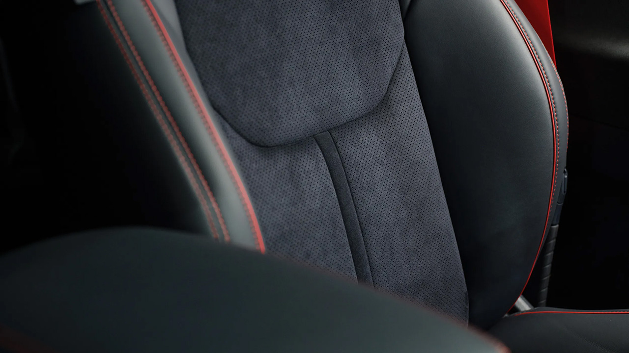 ภายในห้องโดยสารยกระดับความพรีเมียม ด้วยเบาะหนัง Nappa สี Ultramarine พร้อมแทรกวัสดุหนังกลับ และพนักพิงศีรษะปั๊มโลโก้ Genesis เสริมด้วยชิ้นตกแต่งคาร์บอนไฟเบอร์ แอนิเมชันหน้าจอขณะสตาร์ตรถแบบเฉพาะรุ่น รวมถึงการตกแต่งด้ายเย็บและขอบเบาะสีแดง และเพดานหลังคาหุ้มวัสดุหนังกลับ