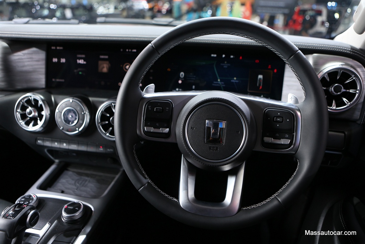 ภายในตัวรถออกแบบมาในโทนสีดำ ผสมผสานระหว่างหนังแท้ สีดำ สีเงิน และวัสดุสัมผัสอ่อนนุ่ม ให้ความรู้สึกพรีเมียม เพิ่มความคลาสสิกมากยิ่งขึ้นด้วยช่องแอร์ทรงกระบอกดีไซน์วินเทจ มาพร้อมหน้าจอแสดงผลข้อมูลการขับขี่แบบดิจิทัลขนาด 12.3 นิ้ว ร่วมกับหน้าจอมัลติมีเดียแบบสัมผัสขนาด 12.3 นิ้ว แผงควบคุมและพวงมาลัยทรงกลม พร้อม Paddle Shift พร้อมปุ่มควบคุมการขับขี่จากคอนโซลกลาง ทำให้เปลี่ยนโหมดการขับขี่ได้อย่างสะดวกและง่ายดาย GWM TANK 300 DIESEL มีสีภายนอกให้เลือกทั้งหมด 4 สี ได้แก่ สีขาว ดำ เทา และสีส้ม อีกทั้งยังเหมาะอย่างยิ่งกับการนำมาตกแต่งเพิ่มเติมตามสไตล์ที่ต้องการ ทั้งรูปแบบการแต่งหล่อเพื่อขับในเมือง หรือแต่งสไตล์ดุดันเพื่อขับออฟโรด ในอนาคต GWM จะมีแพกเกจการตกแต่งให้ลูกค้าได้เลือกสรรตามความชื่นชอบ ณ GWM Partner Store หรือตัวแทนที่ได้รับการแต่งตั้งอย่างเป็นทางการ