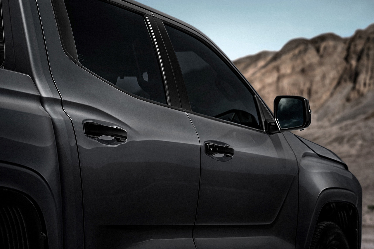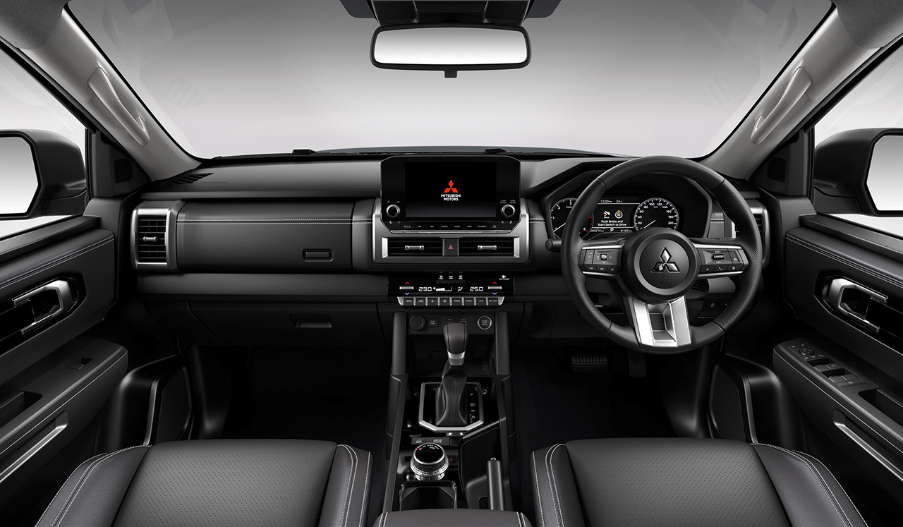 โดยในรุ่น Mitsubishi Triton Double Cab Plus Ultra (รุ่น 4 ประตูยกสูง) จะเพิ่มการตกแต่งด้วยชิ้นส่วนสีดำเงารอบคัน