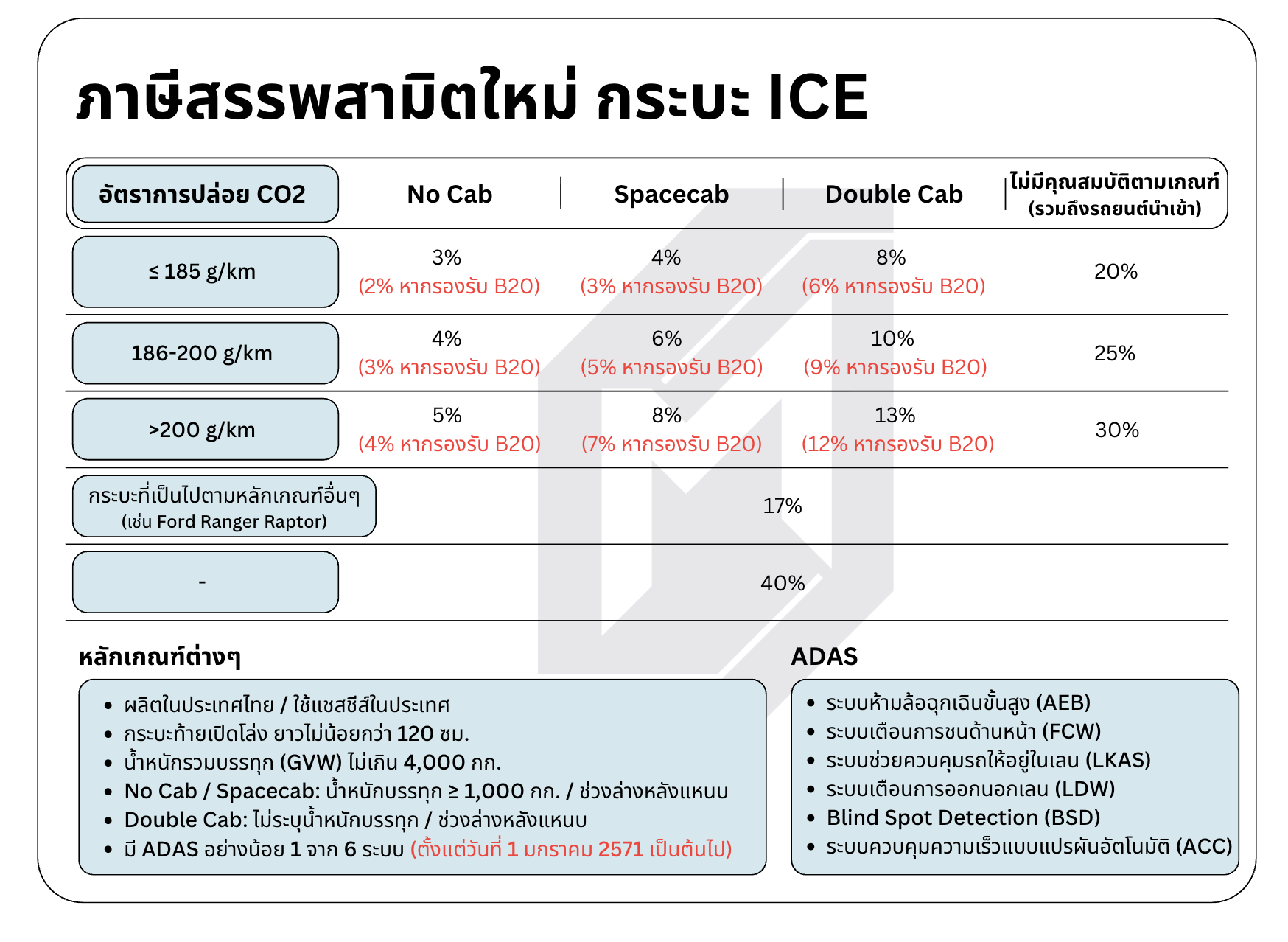 โครงสร้างภาษีใหม่สำหรับรถกระบะเครื่องยนต์ ICE