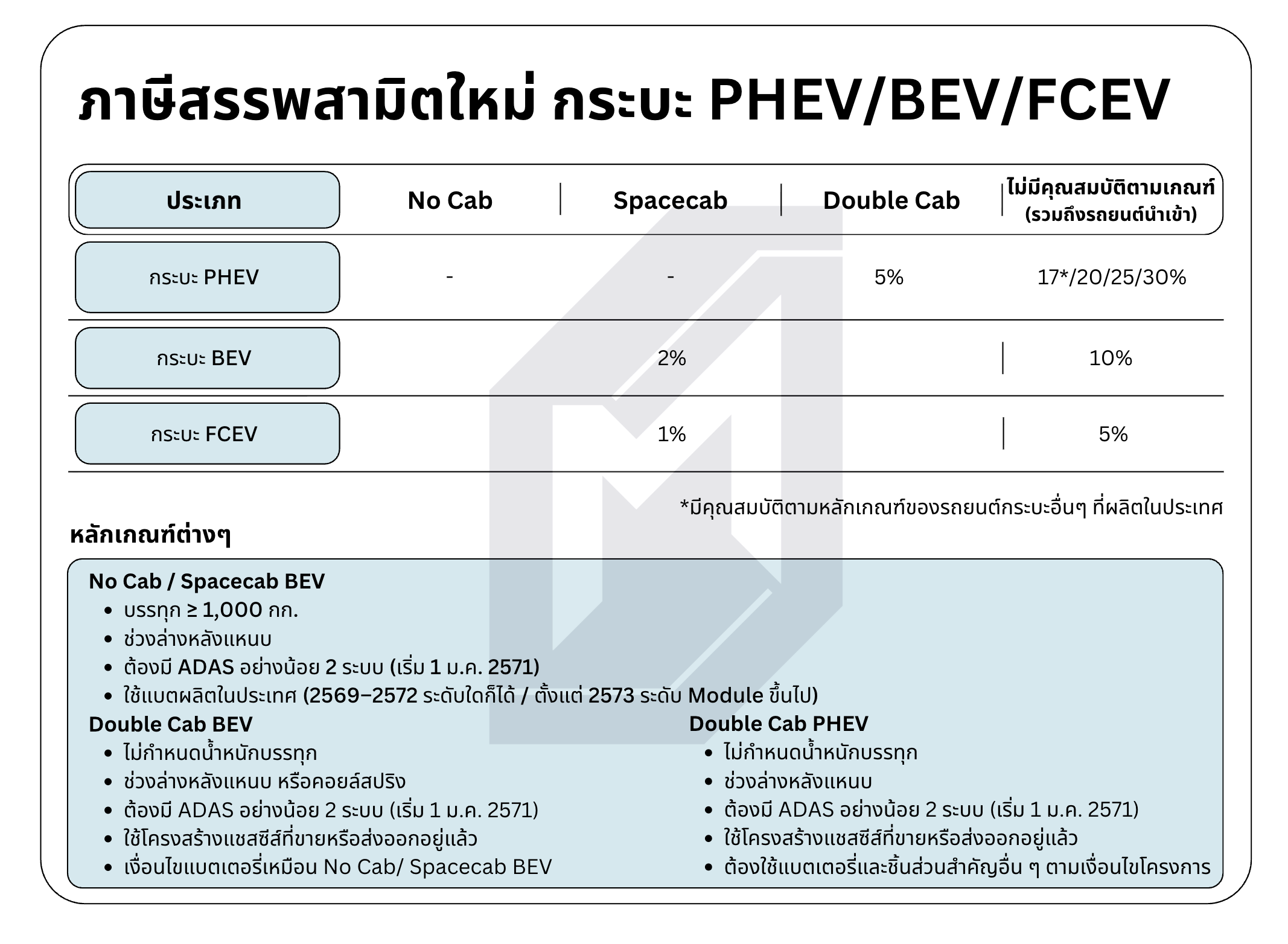 โครงสร้างภาษีใหม่สำหรับรถกระบะ PHEV/ BEV/ FCEV