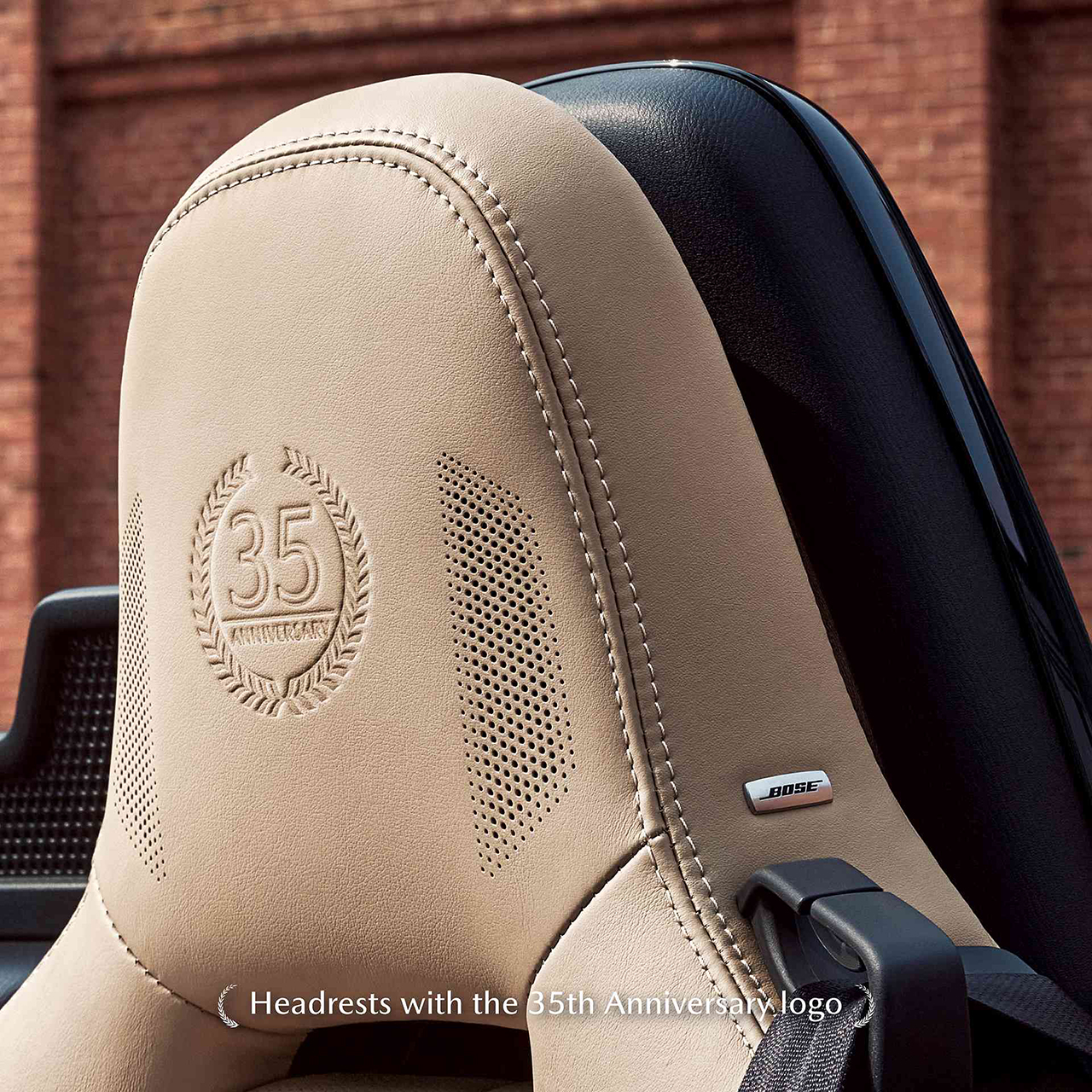 - เบาะหนังหุ้มด้วยหนังสีพิเศษ Sports Tan พร้อมสัญลักษณ์รุ่นพิเศษ 35th Anniversary
