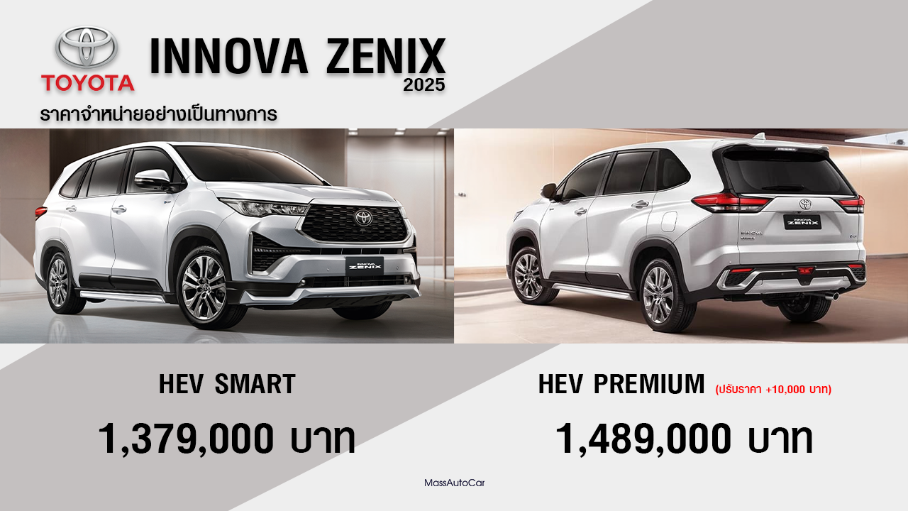 TOYOTA INNOVA ZENIX 2025 ทำตลาดในประเทศไทย 2 รุ่นย่อย ได้แก่