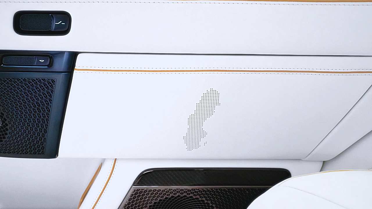 ภายในห้องโดยสารถูกยกระดับความหรูด้วยการใช้หนังสีขาวตัดกับชิ้นส่วนสีดำ และเพิ่มรายละเอียดสีทองเพื่อสร้างบรรยากาศพรีเมียม ไฮไลต์สำคัญคือประตูแบบบานเปิดสวนทาง (rear-hinged doors) ที่ช่วยให้การขึ้นลงสะดวกขึ้น และยังเพิ่มความโดดเด่นเมื่อเปิดใช้งาน