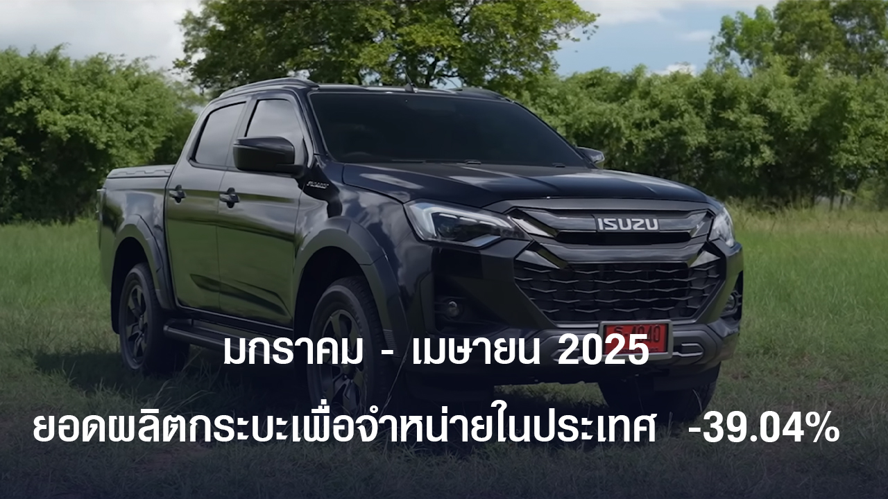 มกราคม - เมษายน 2025 ยอดผลิตกระบะเพื่อจำหน่ายในประเทศ ลดลงถึง 39.04% เทียบกับปีที่แล้ว