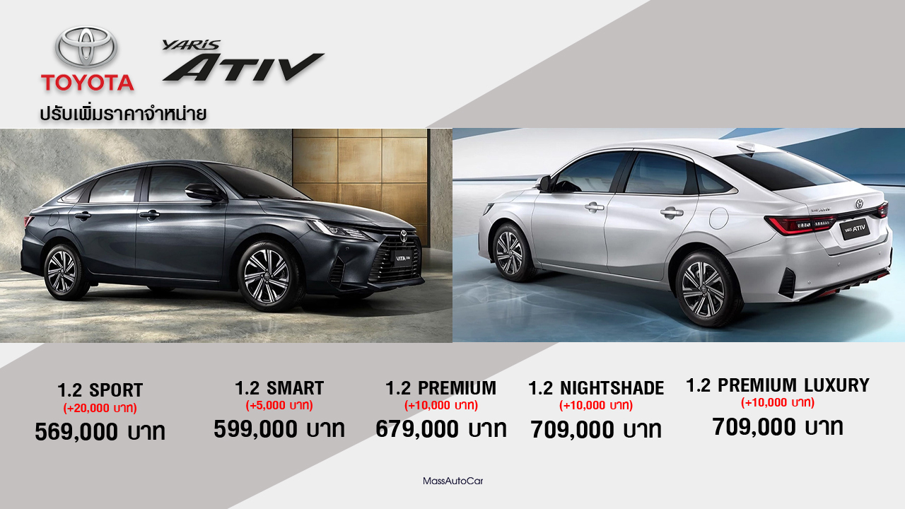 เพิ่ม 5,000-20,000 บาท! TOYOTA YARIS ATIV ปรับราคาเพิ่มขึ้นทุกรุ่นย่อย