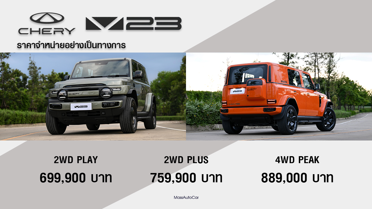 CHERY V23 เอสยูวีไฟฟ้าทรงกล่อง วิ่งไกล 360-430 กม. NEDC ราคา 699,900-889,000 บาท