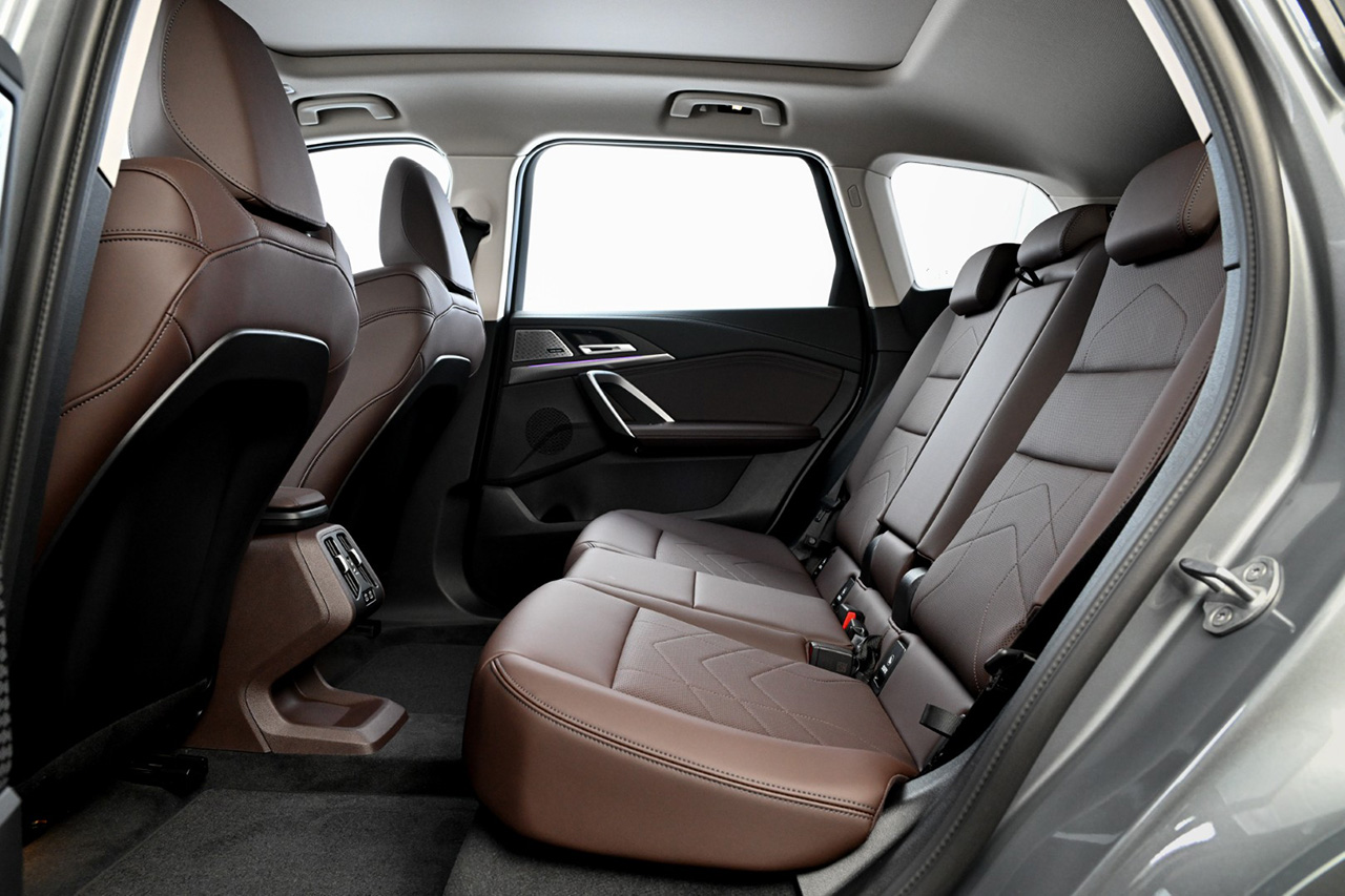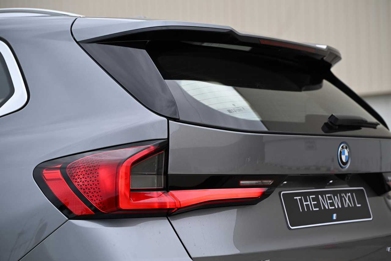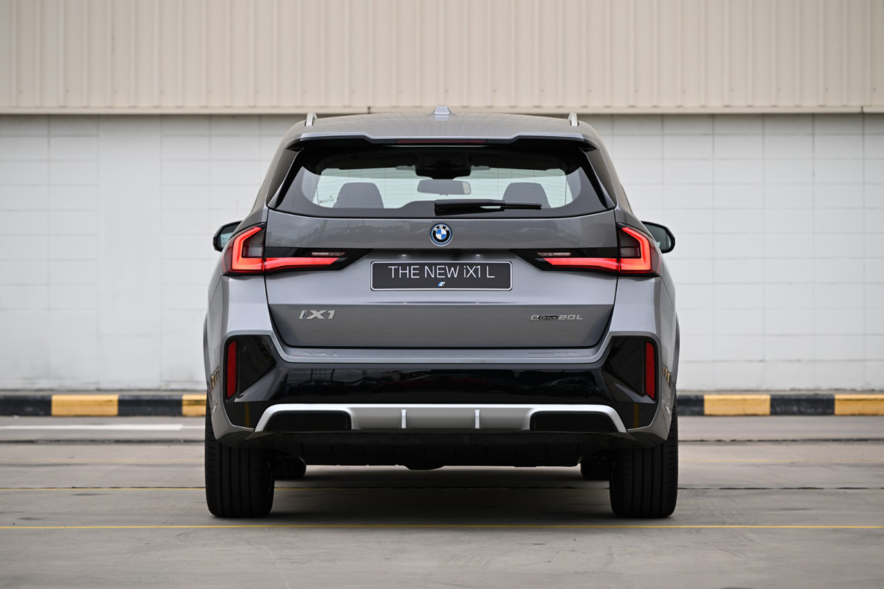 เมื่อเทียบกับ X1 รุ่นมาตรฐาน รุ่นนี้จะตัวถังจะยาวกว่า 116 มิลลิเมตรและระยะฐานล้อยาวขึ้น 110 มิลลิเมตร โดยฐานล้อที่ยาวขึ้นส่งผลให้พื้นที่วางขาในห้องโดยสารตอนหลังกว้างขึ้น 81 มิลลิเมตรและ 107 มิลลิเมตรที่ระดับเข่า มีการบุโฟมเบาะหลังที่นุ่มขึ้นและขยายความกว้างของตัวเบาะขึ้น 15 มิลลิเมตร ระบบช่วงล่างก็ถูกปรับมาโดยเฉพาะเพื่อเพิ่มความนุ่มสบาย เบาะหลังของ iX1 รุ่นฐานล้อยาวนี้ ยังคงแบ่งสัดส่วนเป็น 3 ตอนแบบ 40:20:40 เช่นเดิม และสามารถพับลงได้เพื่อขยายพื้นที่เก็บสัมภาระจาก 490 ลิตรเป็น 1,600 ลิตร ตัวรถติดตั้งระบบ Comfort Access 2.0 ช่วยอำนวยความสะดวกด้วยการปลดล็อกรถเมื่อเจ้าของรถเดินเข้ามาใกล้ และล็อกรถอัตโนมัติเมื่อเดินออกห่างตัวรถ เช่นเดียวกับระบบ BMW Digital Key Plus ที่เปิดโอกาสให้เจ้าของรถใช้สมาร์ทโฟนแทนกุญแจรถ และปลดล็อกรถอัตโนมัติได้เพียงนำสมาร์ทโฟนเข้ามาใกล้