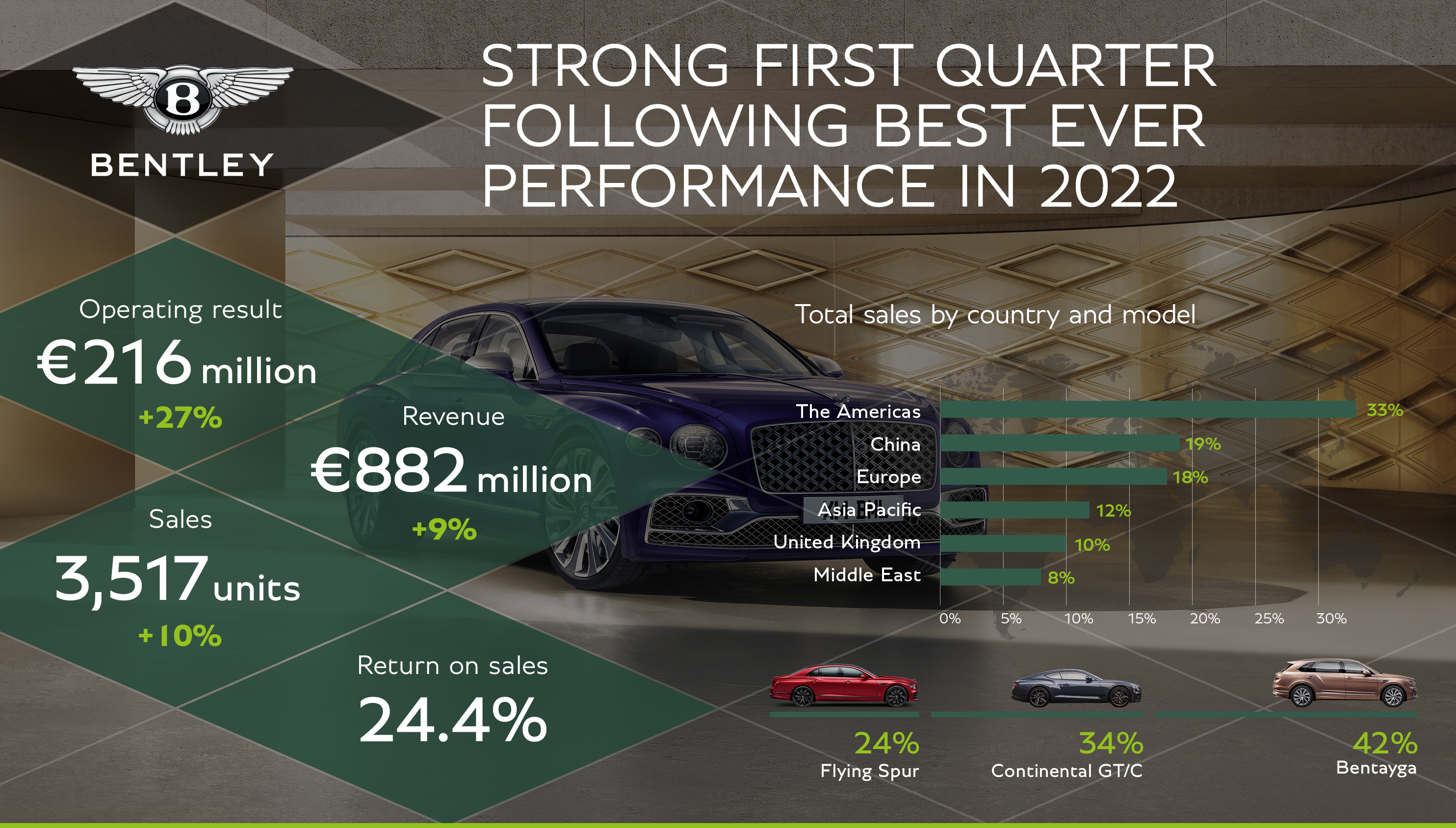 :ผลประกอบการในไตรมาสแรกที่แข็งแกร่งสอดคล้องกับยอดขายรถยนต์เบนท์ลีย์ทั่วโลกกว่า 3,517 คัน เพิ่มขึ้น 10%