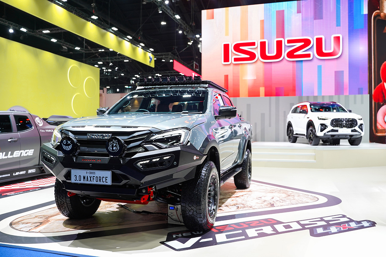 ปิกอัพสปอร์ตออฟโรด ขับเคลื่อนด้วยขุมพลัง 3.0 Ddi MAXFORCE กำลังสูงสุด 190 แรงม้า แรงบิดสูงสุด 450 นิวตัน-เมตร พร้อมระบบ Terrain Command และระบบล็อกเฟืองท้ายไฟฟ้า E-Diff Lock และ Rough Terrain Mode เพิ่มความสะดวกสบายด้วยพวงมาลัยไฟฟ้า EPS มาพร้อมกล้องรอบคัน 360 องศา มุมมองใต้ท้องรถ และระบบความปลอดภัย ADAS รวม 17 ระบบ เช่น LKAS, ACC, FCW, AEB, BSM, RCTA, AHB และ MCB ปรับดีไซน์ใหม่ทั้งภายนอกและภายในกับ ISUZU V-CROSS PACKAGE เสริมลุคดุดันด้วยกระจังหน้า Multi-layer จับคู่ไฟหน้า Modern Line พร้อม Multifunctional Daylight ที่รวมไฟ DRL ไฟหรี่ และไฟเลี้ยวในชุดเดียว ด้านท้ายติดตั้งไฟ LED แบบ Clear Lens และล้ออัลลอยขนาด 18 นิ้ว สี Matte Black ดีไซน์ Metal Claw ภายในห้องโดยสารมาพร้อมเบาะทูโทนดีไซน์ใหม่ วัสดุ COOLMAX ช่วยลดความร้อน และเบาะคนขับปรับไฟฟ้า 8 ทิศทาง
