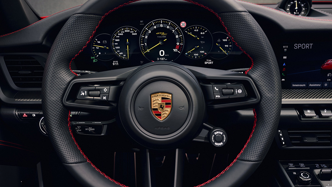คันเกียร์โทนสีเข้มโดดเด่นทั้งในด้านการออกแบบและสัมผัส พร้อมกับหัวเกียร์ไม้ลามิเนตและลายผังเกียร์ในสี Pyro Red พร้อมสัญลักษณ์ GT3 S/C ใต้คันเกียร์ แถบตกแต่งบนแผงแดชบอร์ด และสัญลักษณ์ 911 ในฝั่งผู้โดยสารก็ตกแต่งด้วยสี Pyro Red เช่นกัน นอกจากนี้ปอร์เช่ ดีไซน์ (Porsche Design) ยังได้นำเสนออุปกรณ์เสริมที่ออกแบบมาเพื่อเติมเต็มแพ็กเกจ Street Style อีกด้วย