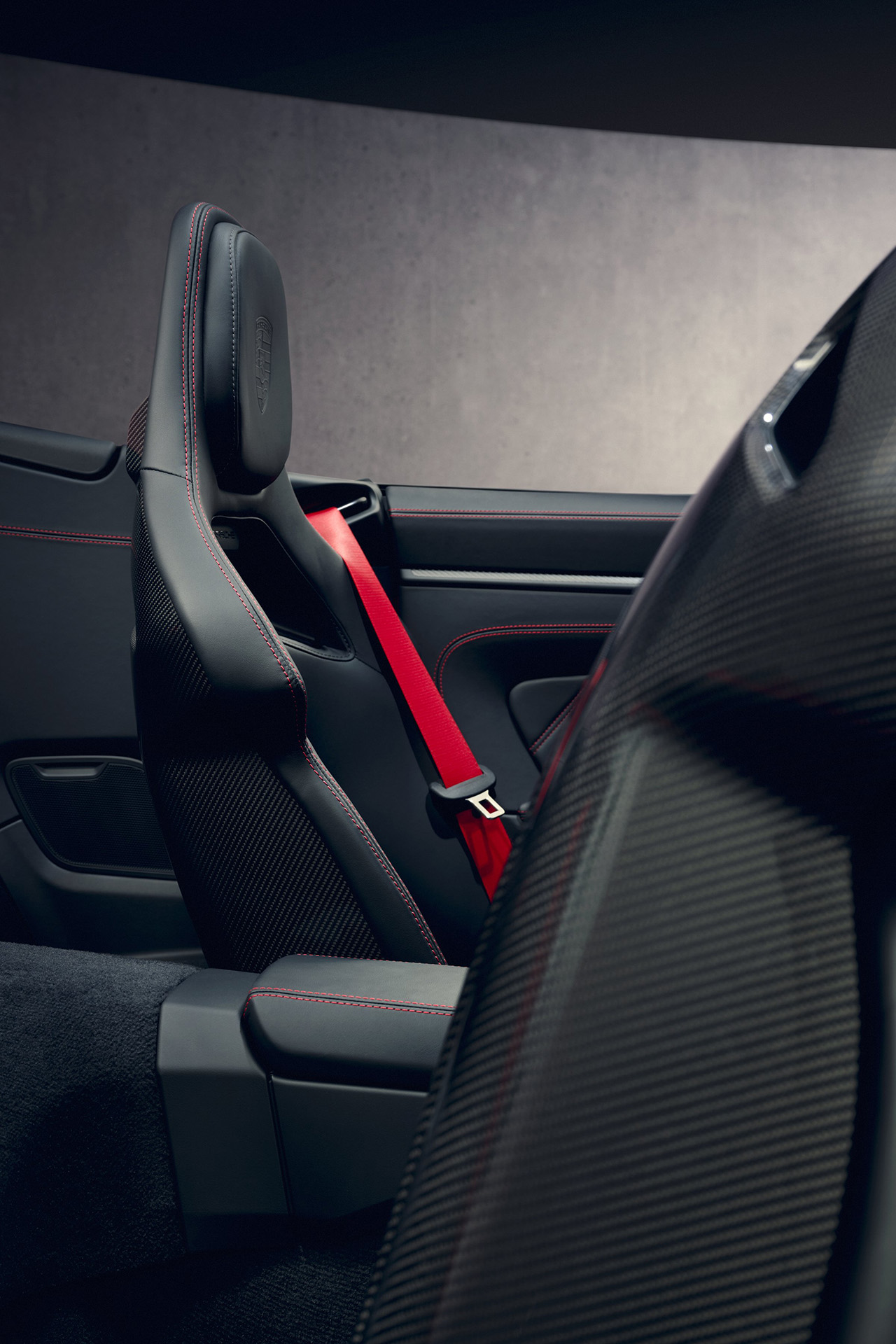 กรอบคอพวงมาลัย คอนโซลเบาะ ขอบกาบประตูด้านใน และฝาครอบฟิวส์ ตกแต่งด้วยหนัง เช่นเดียวกับช่องแอร์รวมถึงครีบช่องลม พรมปูพื้นตกแต่งด้วยขอบหนัง แผงบังแดด คอนโซลกระจกมองหลัง และกรอบกระจกหน้า รวมถึงซับในหลังคาเปิดประทุน หุ้มด้วยวัสดุ Race-Tex สี Slate Grey แบบระบายอากาศ