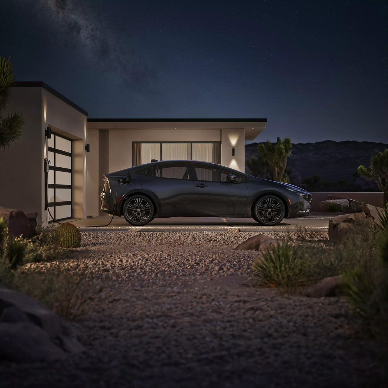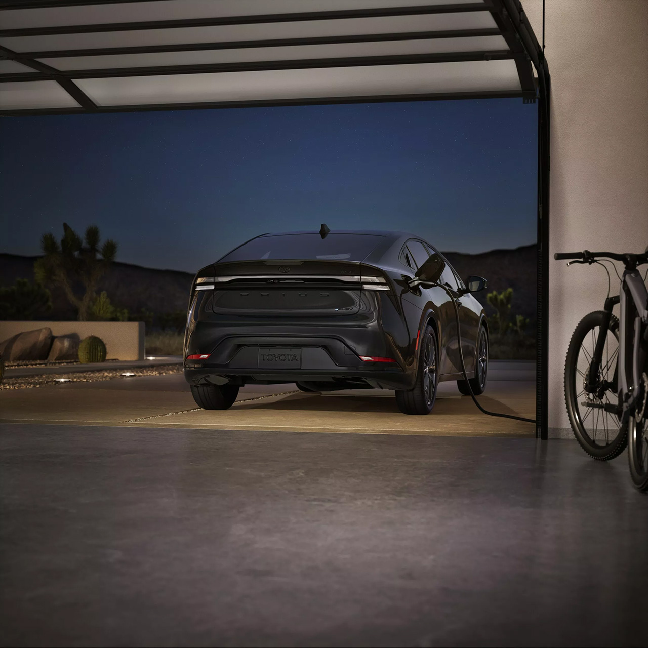 Three drive modes are available: EV Mode (pure electric), Auto EV/HV Mode (primarily electric with automatic switch to hybrid when needed), and Hybrid Mode (combining engine and electric motor power). Inside, all trims feature a digital instrument cluster and Toyota Audio Multimedia system—an 8-inch touchscreen for SE, XSE, and Nightshade, and a 12.3-inch display for the XSE Premium.