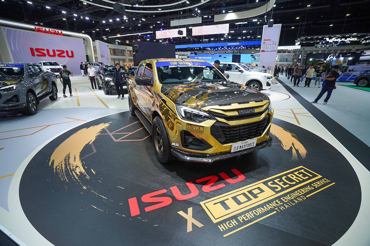 - ISUZU D-MAX HI-LANDER “TOP SECRET X ISUZU D-MAX” ครั้งแรกที่สำนักแต่งรถชื่อดังระดับโลกจากญี่ปุ่น “TOP SECRET” เลือกรถปิกอัพไปแต่งแบบเต็มพิกัด ด้วยชุดแต่งคาร์บอนไฟเบอร์เกรดพรีเมียมรอบคัน เพิ่มความดุดันและมีน้ำหนักเบา แรงเต็มสูบด้วยการปรับแต่งเพิ่มความแรงเครื่องยนต์จากสำนัก ECU Shop เน้นแรงแบบไร้ควัน เพิ่มสมรรถนะช่วงล่างให้รับกับความแรง ด้วยชุดช่วงล่างจาก PROFENDER พร้อมระบบเบรก AP RACING จับคู่กับล้อยอดนิยมตลอดกาล RAYS ENGINEERING VOLK RACING รุ่น TE37 ขนาด 18 นิ้ว จากญี่ปุ่น ยาง BRIDGESTONE ALENZA 001 เสริมอารมณ์สปอร์ตให้กับการขับขี่ พร้อมชุดแต่งภายในคาร์บอนไฟเบอร์เกรดพรีเมียมของ TOP SECRET เบาะรถแข่งคู่หน้า RECARO รุ่น TOM CAT และพวงมาลัยเรซซิ่งของ SARD