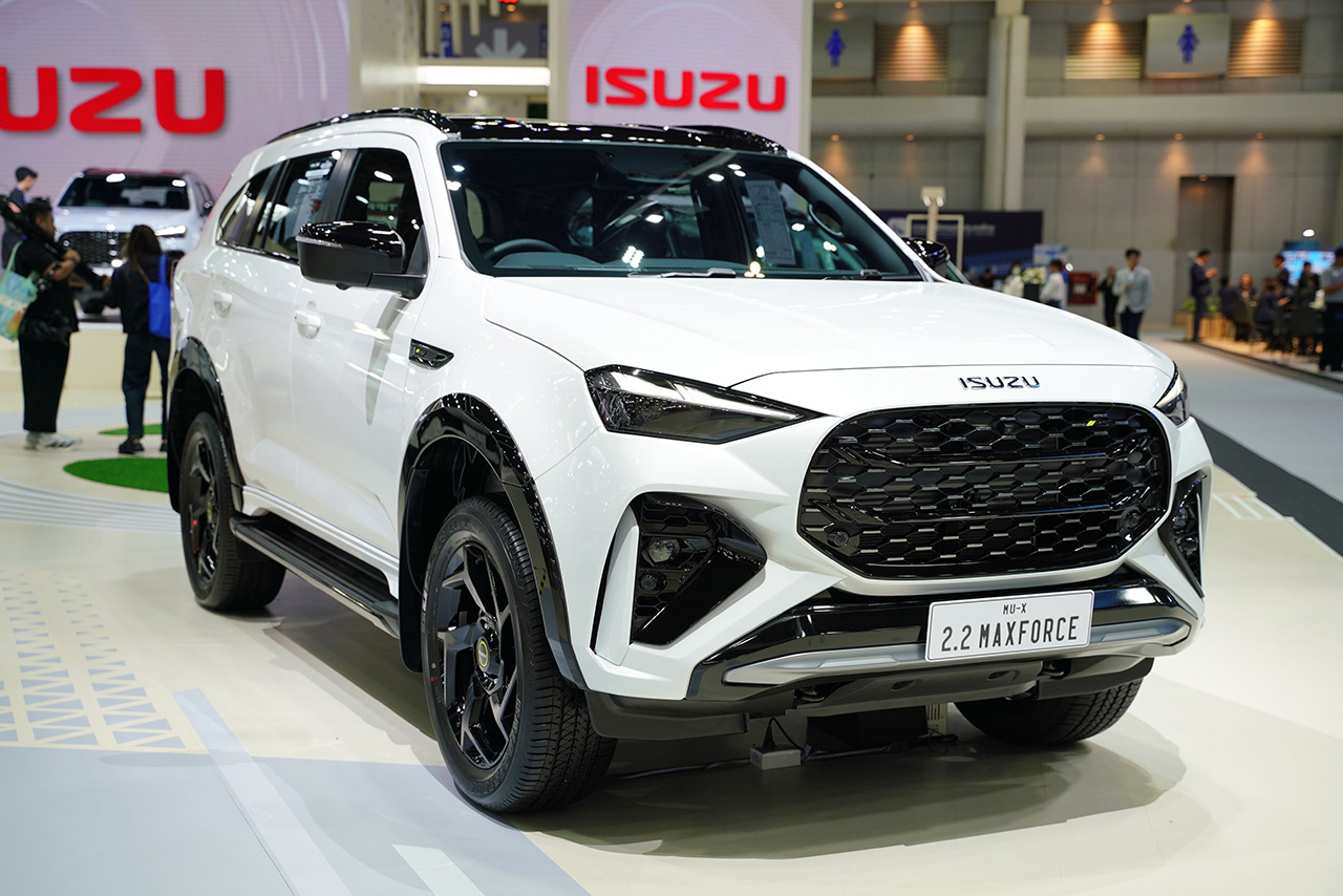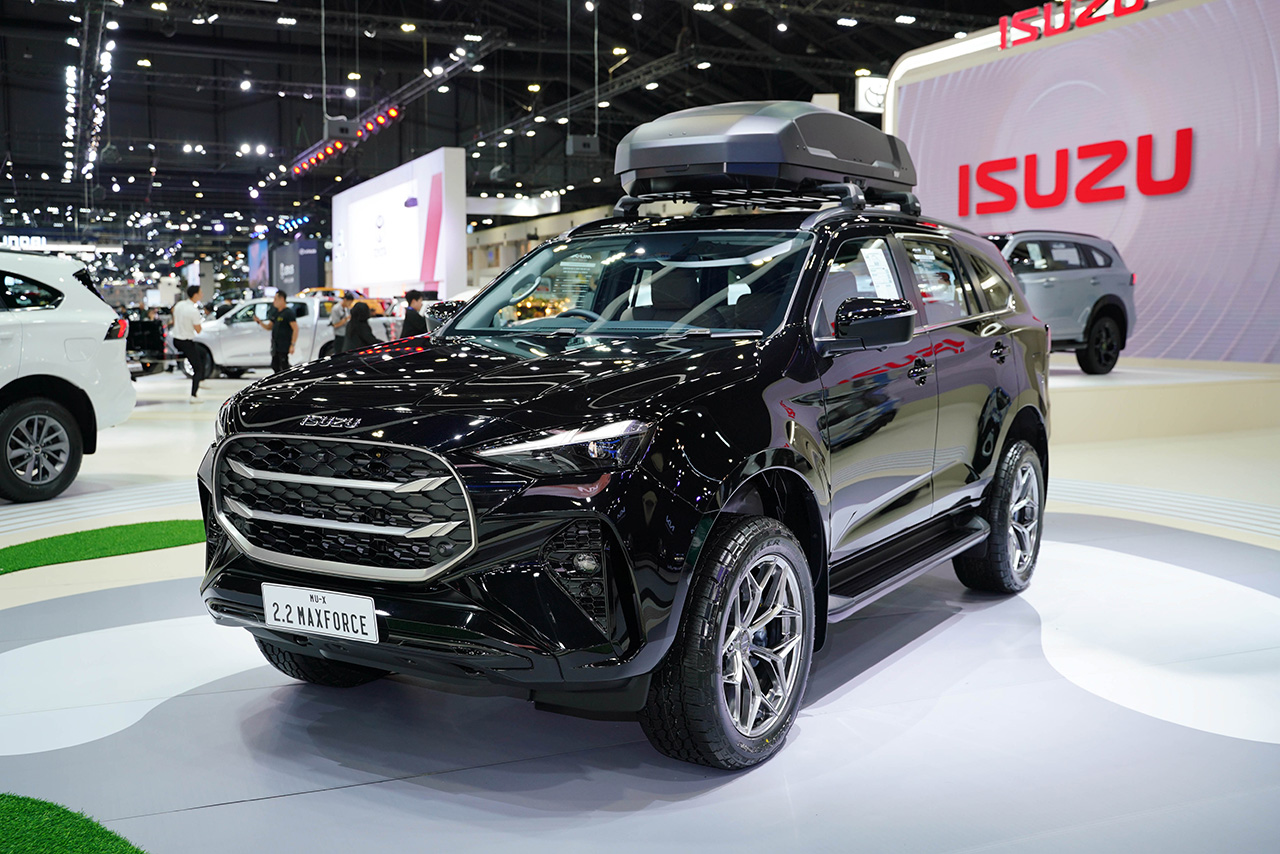 - MU-X “THE NEXT PEAK” รุ่น Ultimate 2.2 Ddi MAXFORCE สีดำบาวาเรียนไมก้า (Bavarian Black Mica) มาพร้อมคอนเซ็ปต์รถครอบครัวเพื่อการท่องเที่ยว พร้อมความปลอดภัยครบครันด้วย ใหม่! กล้องรอบคัน 360° Surround View Camera พร้อมมุมมองใต้ท้องรถเพื่อความแม่นยำในการขับขี่ เพิ่มความอเนกประสงค์ในการเดินทางด้วยชุดคานบนหลังคา THULE รุ่น WINGBAR EDGE เพิ่มพื้นที่ในการจัดเก็บสัมภาระ ด้วยกล่อง THULE FORCE บนหลังคา เสริมความมั่นใจในการเดินทางด้วยล้อ LENSO รุ่น JAGER DYNA พร้อมยาง BRIDGESTONE DUELER AT002 ขนาด 265/50R20