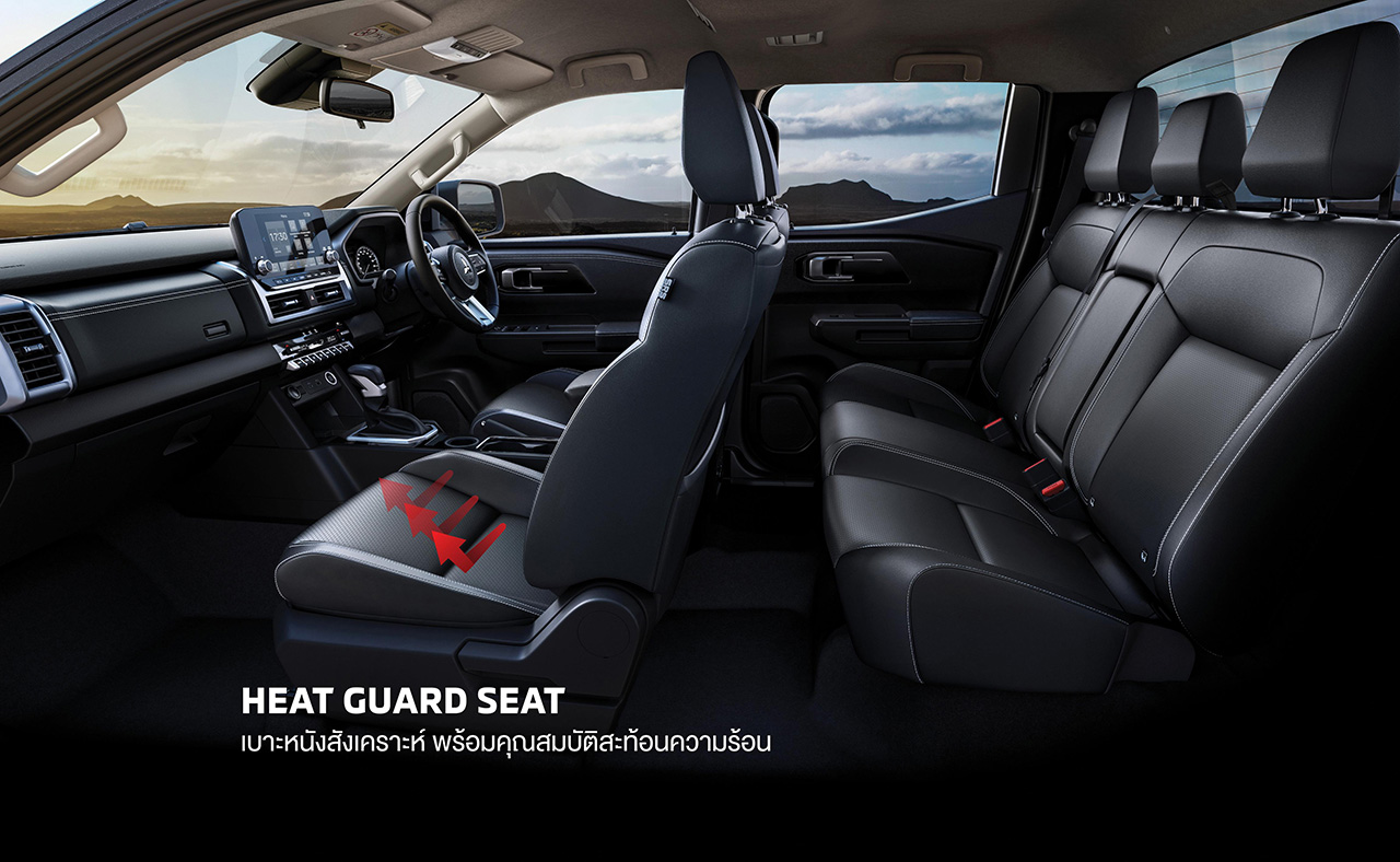 - เบาะนั่งหนังสังเคราะห์ที่มีคุณสมบัติสะท้อนความร้อน (Heat Guard)