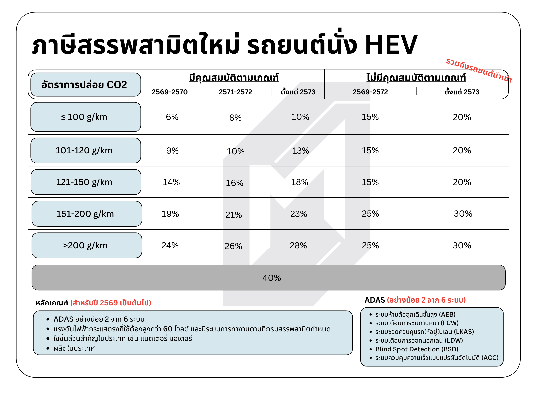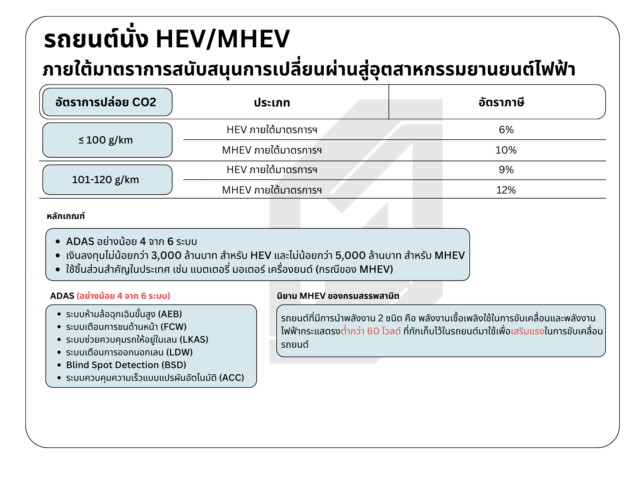 รถยนต์นั่ง ขุมพลัง HEV/MHEV (ภายใต้มาตราการสนับสนุนการเปลี่ยนผ่านสู่อุตสาหกรรมยานยนต์ไฟฟ้า)