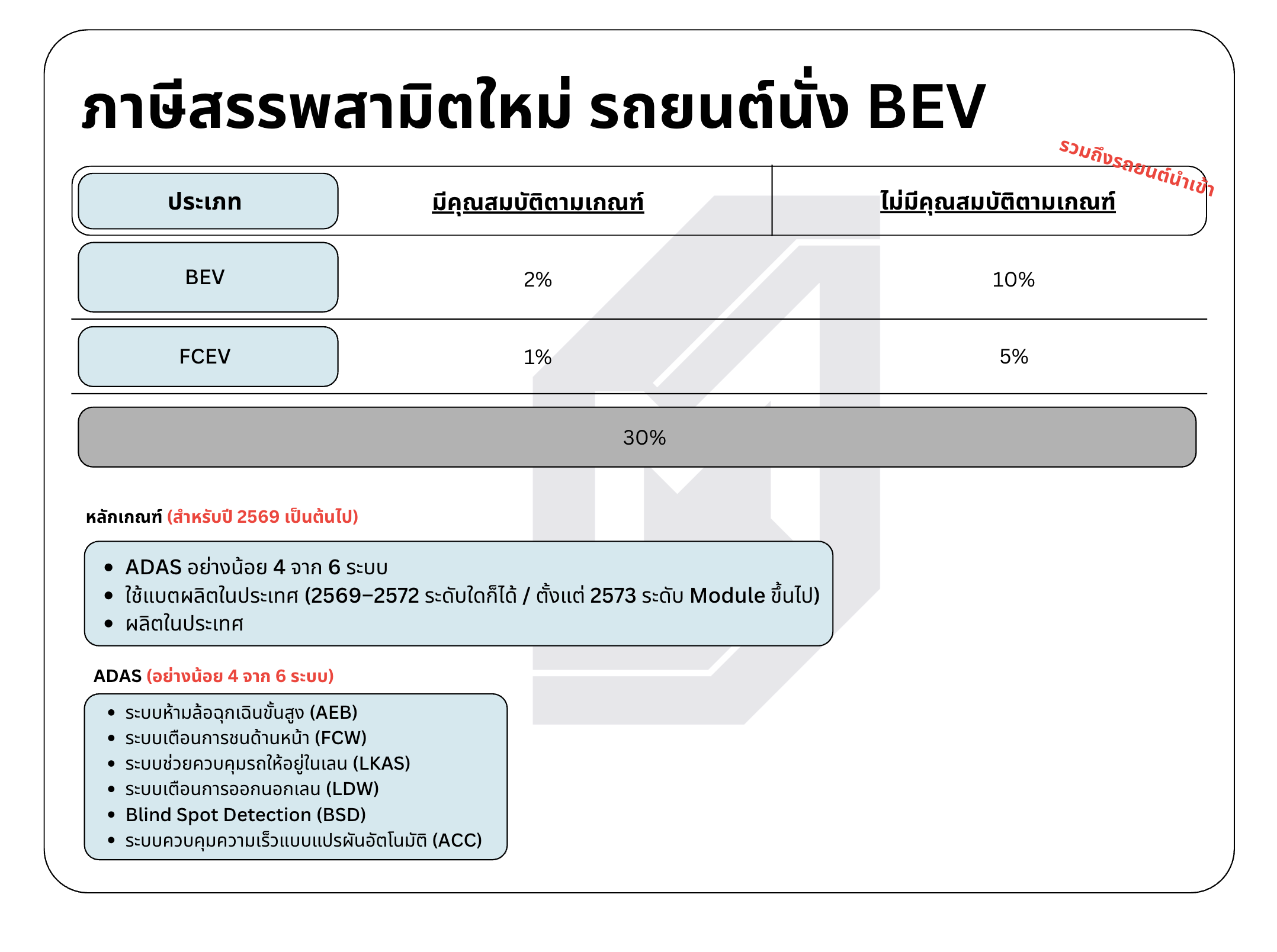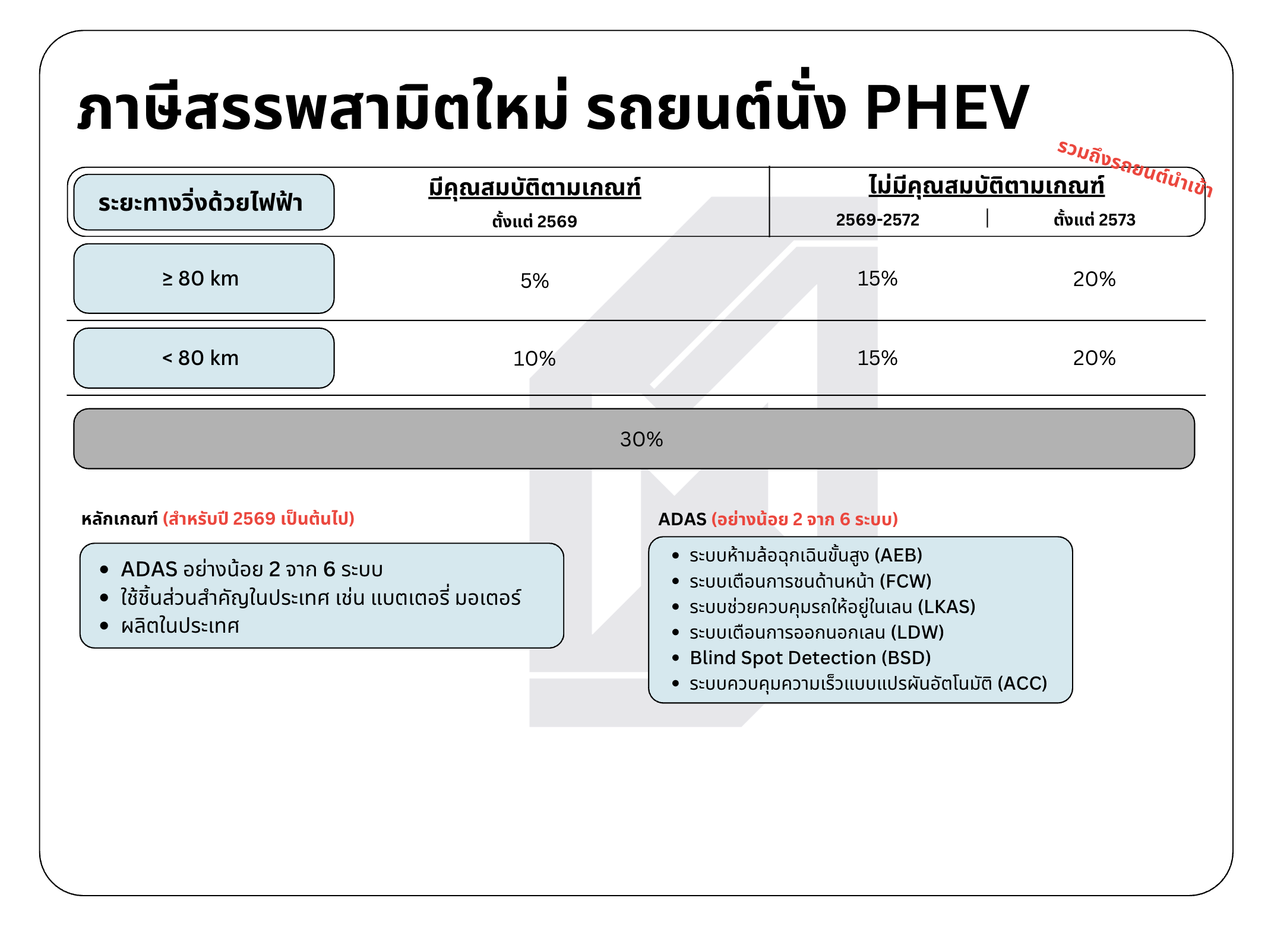รถยนต์นั่ง HEV/PHEV แบ่งเป็น 3 กรณี ได้แก่