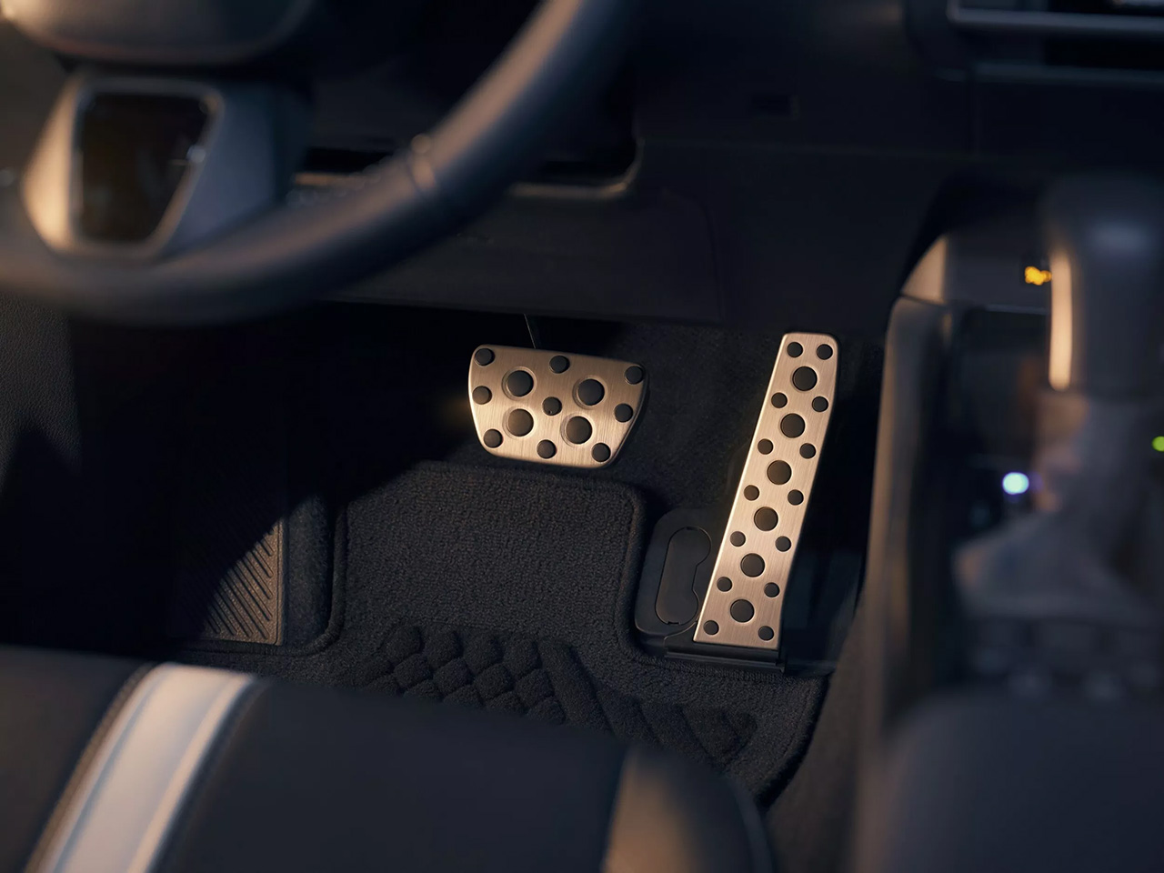 ภายในห้องโดยสาร มาพร้อมกับเบาะหนังสังเคราะห์ SofTex สีดำ ตัดด้วยลายเส้นสีขาว แป้นเหยียบอะลูมิเนียม และ พวงมาลัยหุ้มหนังพร้อมแพดเดิลชิฟต์
