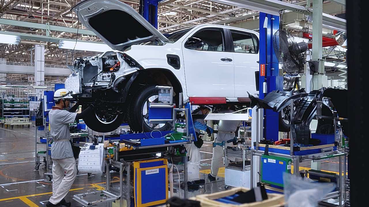 2. ไลน์ประกอบรถกระบะไฟฟ้า ซึ่งประกอบรถยนต์โตโยต้า รุ่น Hilux Travo-e