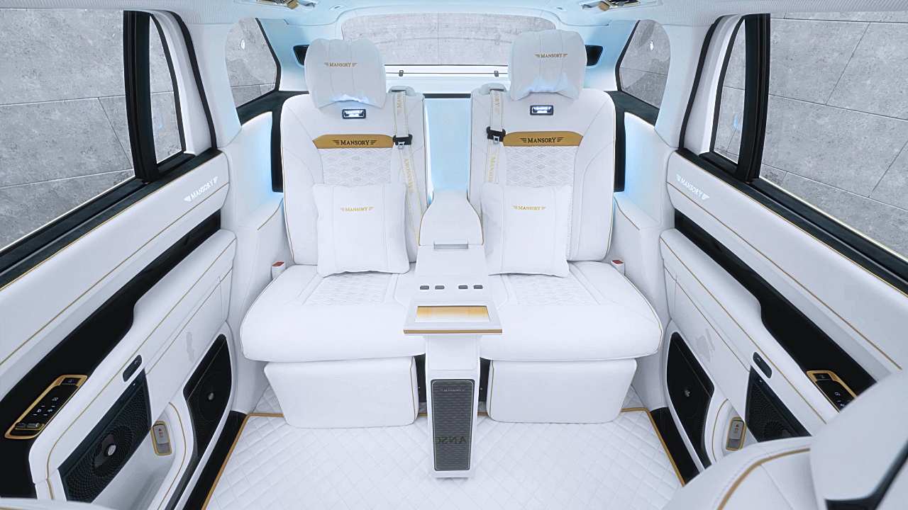 ภายในห้องโดยสารถูกยกระดับความหรูด้วยการใช้หนังสีขาวตัดกับชิ้นส่วนสีดำ และเพิ่มรายละเอียดสีทองเพื่อสร้างบรรยากาศพรีเมียม ไฮไลต์สำคัญคือประตูแบบบานเปิดสวนทาง (rear-hinged doors) ที่ช่วยให้การขึ้นลงสะดวกขึ้น และยังเพิ่มความโดดเด่นเมื่อเปิดใช้งาน